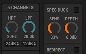 新しいプロセッサー「スペクトラルダッカ―」は、ターゲット以外の信号に含まれる周波数を穏やかにダッキングすることができます。