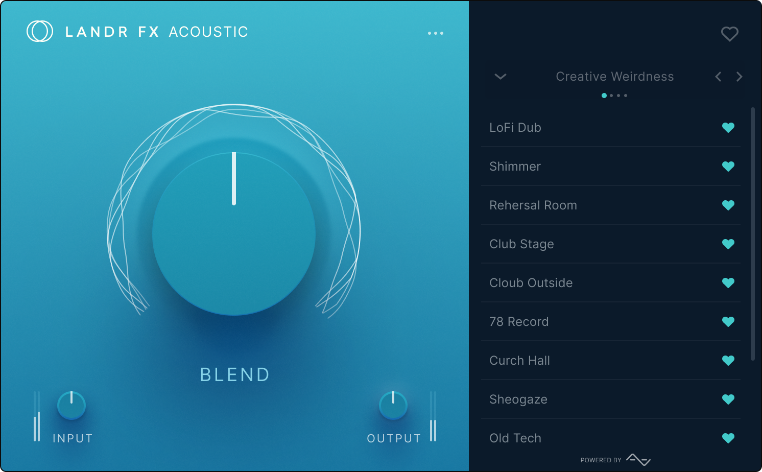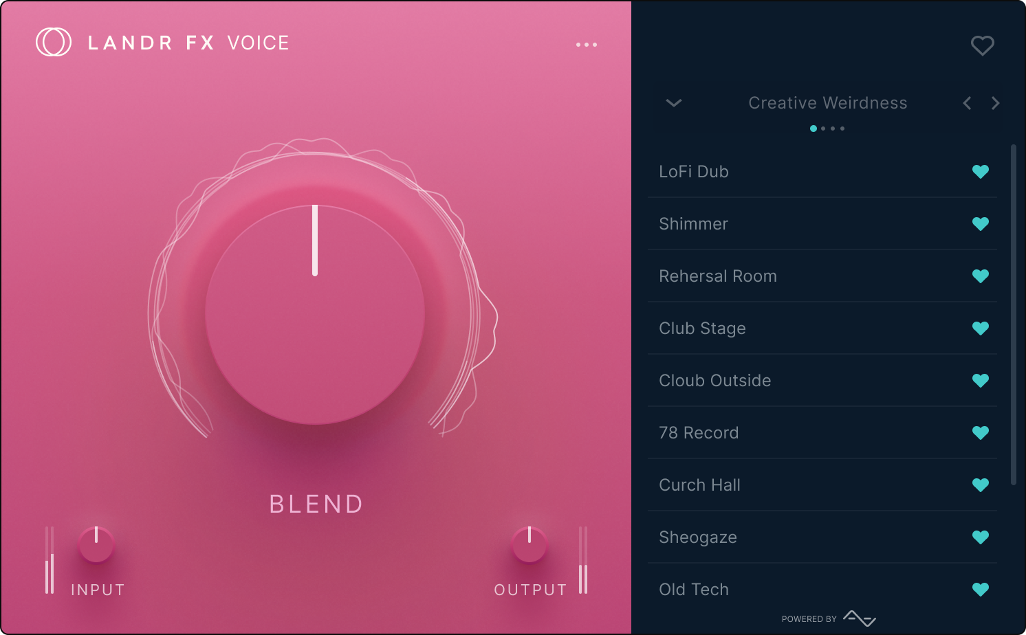LANDR FX Suiteに含まれるシングルダイヤル式マルチFXプラグインはサウンドに色彩やキャラクター、エフェクトを与えます。フルスイートにはVoice、Beats、Bass、Electric、Acousticの5つのプラグインが含まれています。